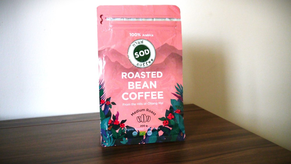 Background – Not a common supermarket coffee, I admit, this is a bag of medium roasted beans sourced from the Chiang Mai mountains of Thailand, grown in farms as high as 1,400 meters.